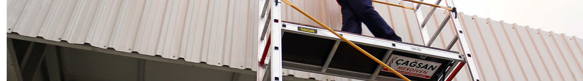 Diagonal and horizontal braces made of iron pipes connect the main ladders of the scaffolding. Thanks to the Q-Lock System, it can be installed very quickly and safely. Platform height and scaffolding height can be adjusted every 28 cm thanks to the rope & pulley system. The trapdoor of the platform enables the user to reach the platform safely. The guardrails with a height of 100 cm. provide a safe area for the user.