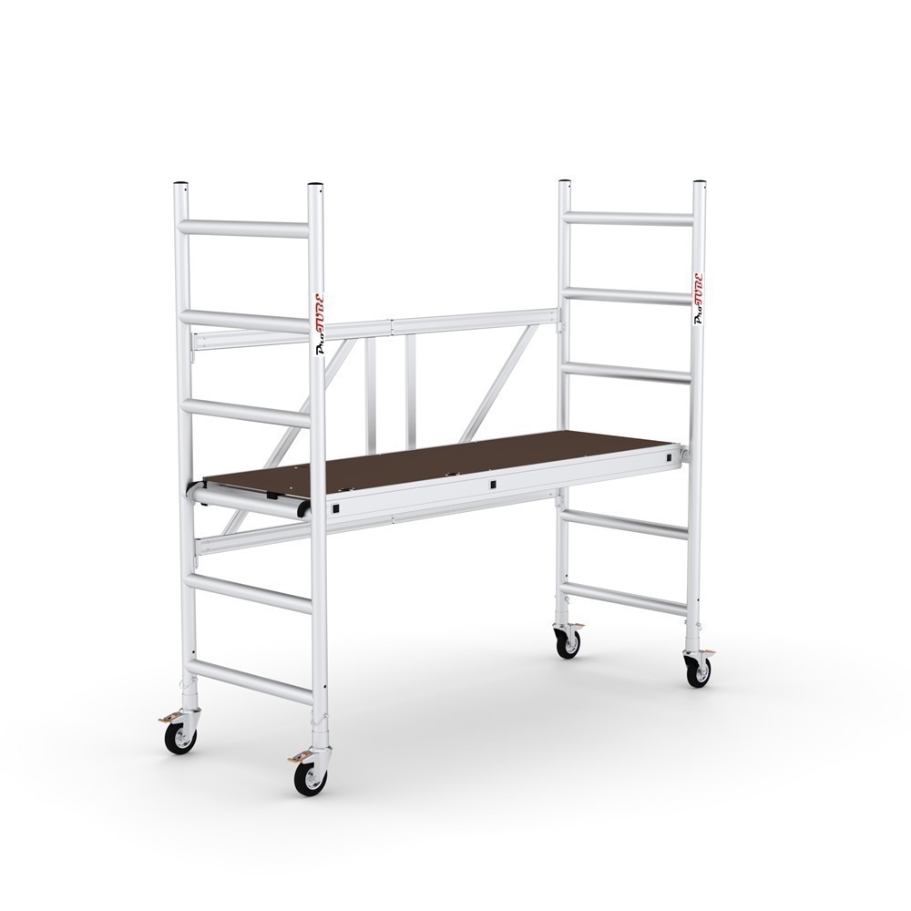 Le modèle ProTUBE F, disponible en 3 tailles différentes, se compose de modules PROTUBE Professional Scaffolding System. La plateforme peut être ajustée en fonction de la hauteur à travailler. Puisqu'il est en aluminium, son installation est simple, légère et utile.
